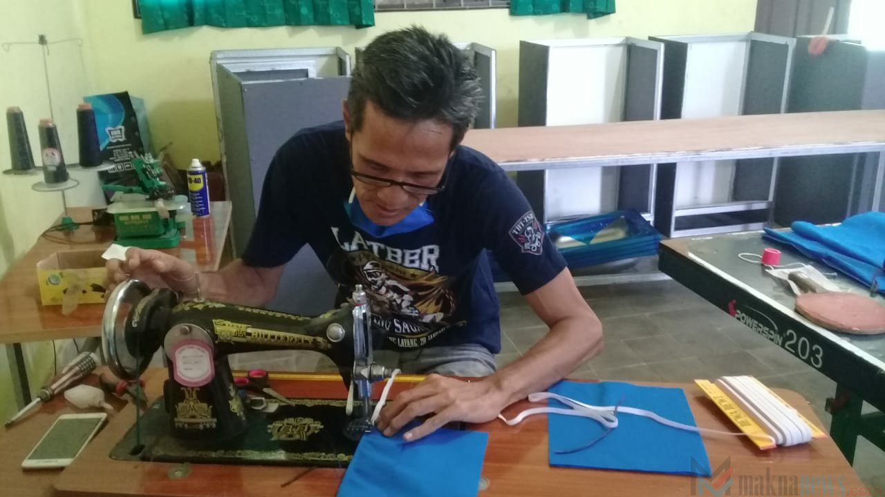 Khairul Anam, Kepala SMAN 1, kecamatan Banua Lima, kabupaten Barito Timur, terliat sibuk membuat masker dengan mesin jahit yang di kerjakan langsung oleh beliau sendiri pada Selasa, 7 April 2020.