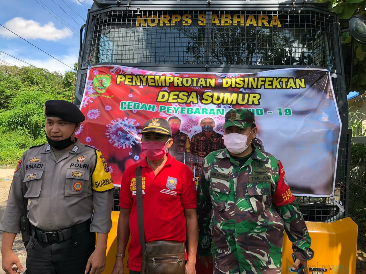 Kegiatan tersebut juga di lakukan bersama Poskesdes , Babinsa dan Bhabinkamtibmas , tujuannya dalam rangka pencegahan pandemi Covid-19 , dan ikut bertipasi membantu pemerintah sesuai tupoksi Pemdes Sumur memutus rantai Covid-19 sekarang ini melanda Negara.