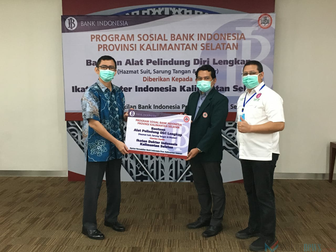 Oleh karena itu, Kantor Perwakilan Wilayah Bank Indonesia (KPwBI) Kalsel menyerahkan bantuan Alat Pelindung Diri (APD) lengkap kepada Ikatan Dokter Indonesia (IDI) Kalsel, Selasa (28/4/2020).