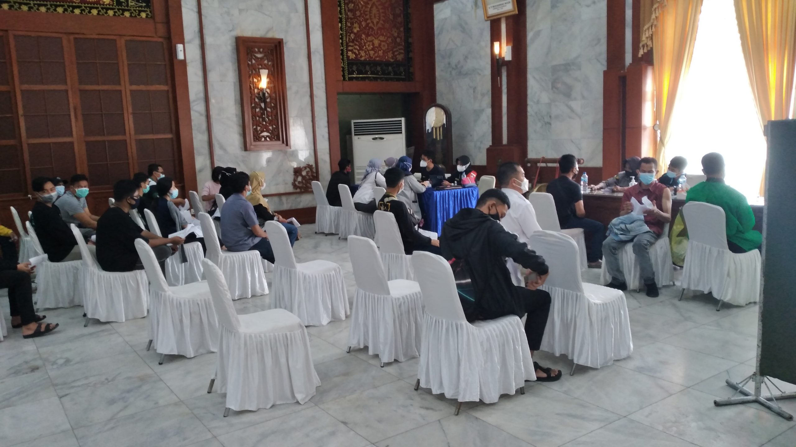 Mengingat capaian vaksin di tahapan ini cenderung lebih lambat dibandingkan tahap satu yang diberikan kepada tenaga kesehatan (nakes), maka Perkumpulan Pengusaha Event Organizer (Perpeo) Kalsel bersama Polda Kalsel mengambil langkah dengan menggelar vaksinasi pada hari ini, Senin (07/06), di Gedung Mahligai Pancasila, Banjarmasin.