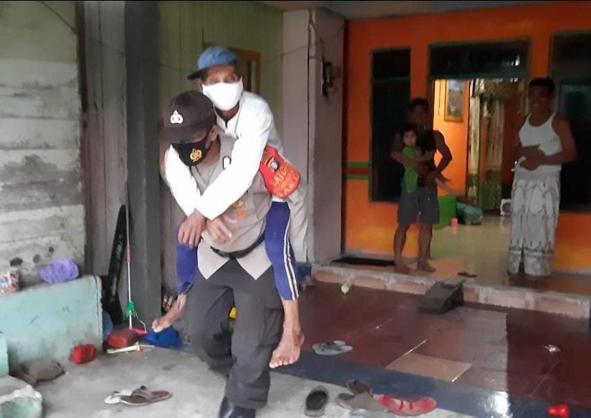 Dalam kegiatan di wilayah Pematang Karau tersebut, anggota Kepolisian dan TNI menyediakan 3 armada siap meluncur antar-jemput warga lanjut usia (Lansia).