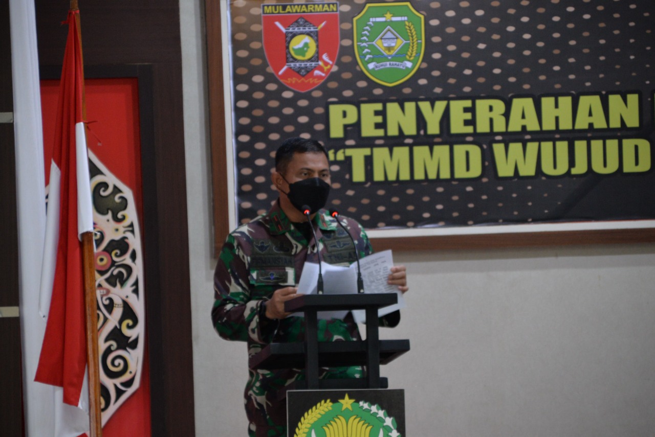 RANTAU – TNI Manunggal Membangun Desa (TMMD) Ke-111 Kodim 1010/Tapin TA 2021, ditutup dengan penyerahan hasil TMMD dari Danrem 101/Antasari kepada Bupati Tapin yang diwakili oleh Sekda Kabupaten Tapin, H Masyraniansyah. Penyerahan hasil TMMD tersebut dilaksanakan di Aula Parikesit, Kodim 1010/Tapin, Rabu (14/7/2021).