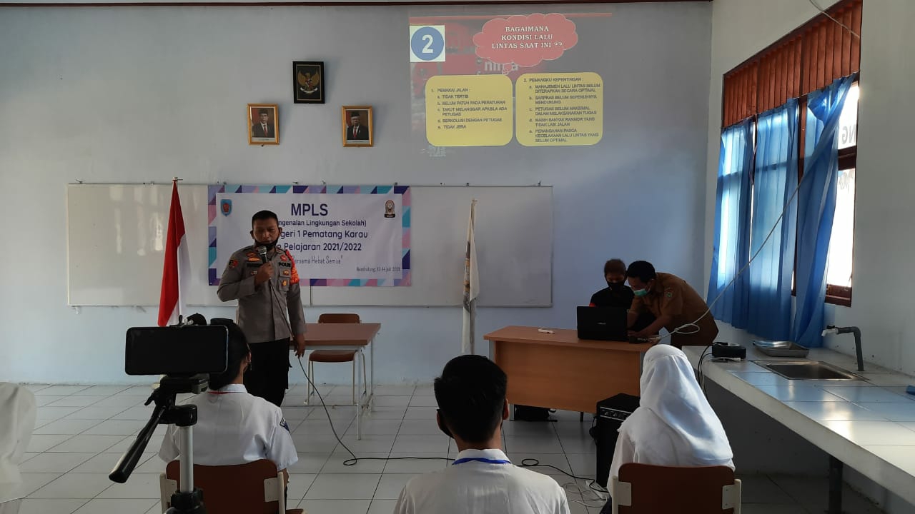 Kegiatan MPLS SMAN 1 ini menghadirkan Kapolsek Pematang Karau, Iptu Rochman Hakim, sebagai narasumber.