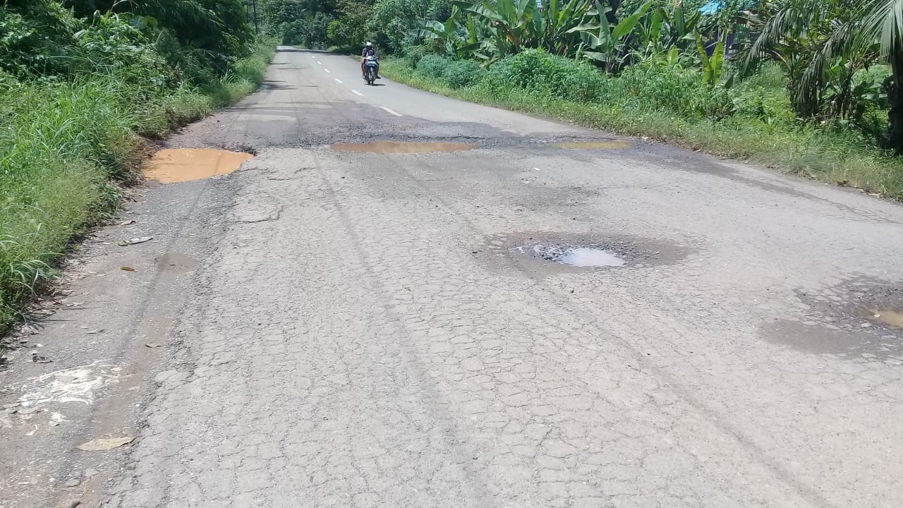 TAMIYANGLAYANG – Ruas jalan lintas Provinsi Kalimantan Tengah (Kalteng) di kawasan Desa Biwan, Kecamatan Awang, Kabupaten Barito Timur (Bartim), sudah lama rusak.