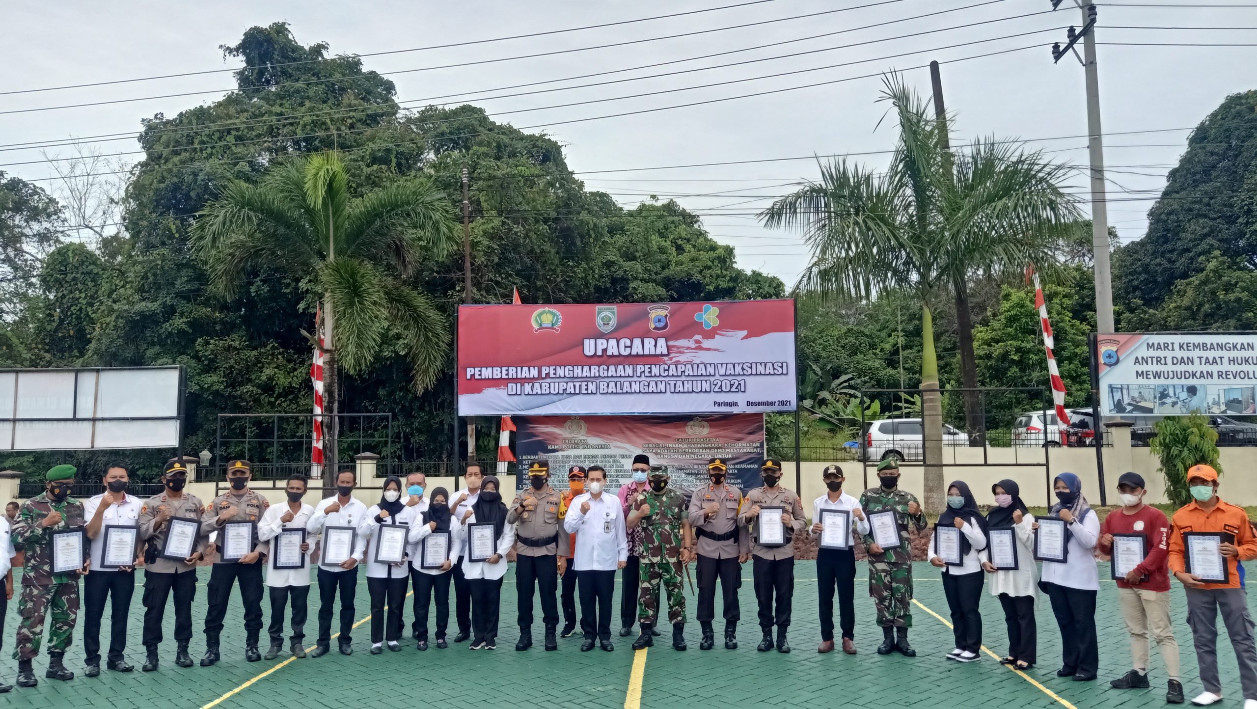 PARINGIN – Polres Balangan memberikan penghargaan kepada instansi pemerintah dan perorangan atas pencapaian vaksinasi di wilayah Kabupaten Balangan, Rabu (8/12/2021).