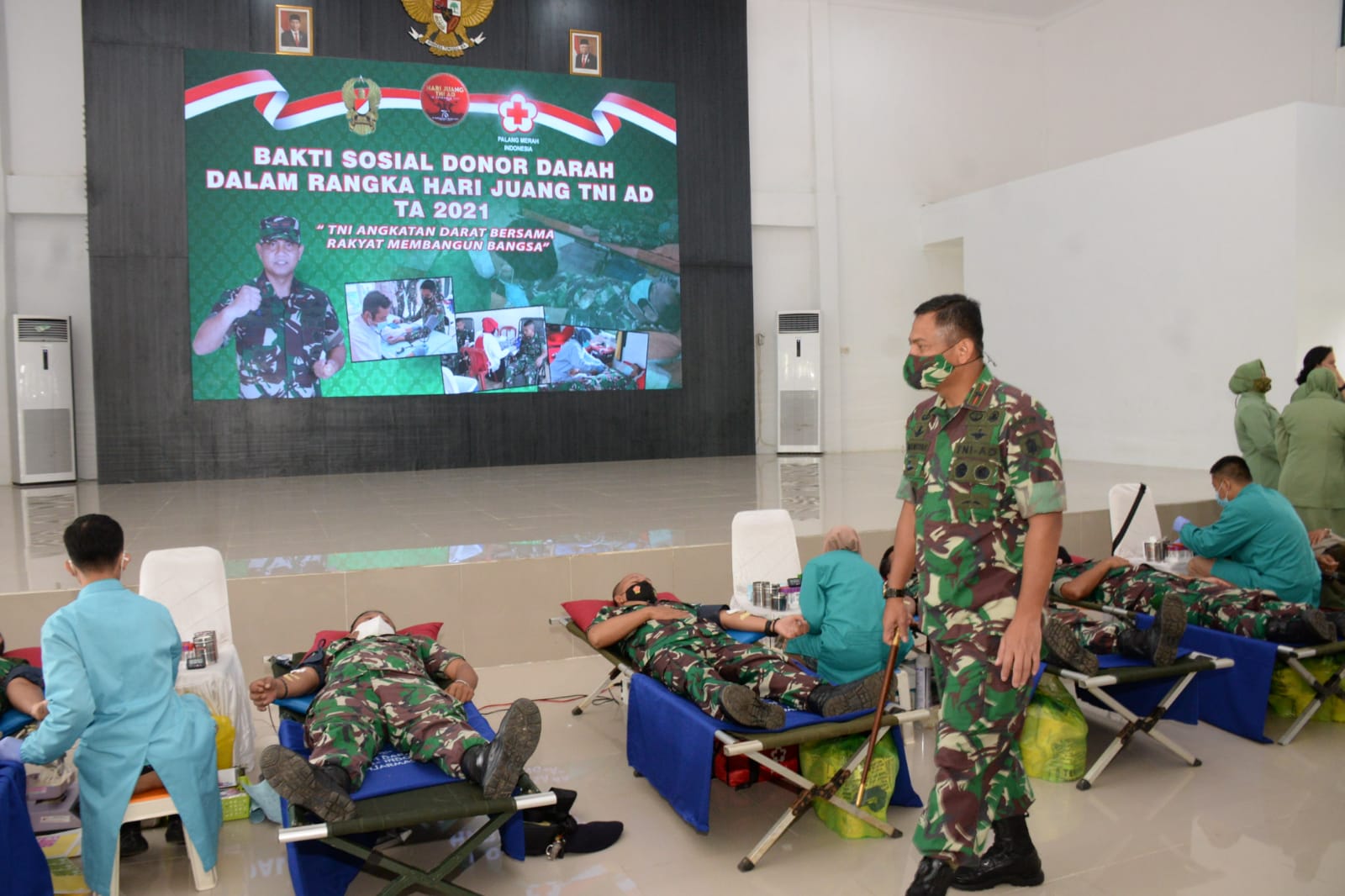 BANJARMASIN – Korem 101/Antasari menggelar kegiatan bakti sosial donor darah, dalam rangka menyambut Hari Juang TNI AD 15 Desember, di Aula Korem 101/Antasari, Banjarmasin, Kamis (9/12/2021).