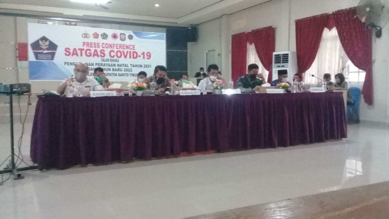 TAMIYANGLAYANG – Satuan Gugus Tugas (Satgas) Covid-19 Kabupaten Barito Timur (Bartim) menggelar Press Conference bersama, dalam rangka pengamanan perayaan Natal 2021 dan Tahun Baru 2022 di wilayah Kabupaten Bartim, Rabu (22/12/2021).