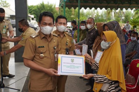 Penyerahan bantuan ini berlangsung di halaman Kantor Bupati Balangan pada Selasa (4/1/ 2022) dalam rangka pembinaan terhadap pelaku UMKM di delapan Kecamatan di Kabupaten Balangan.
