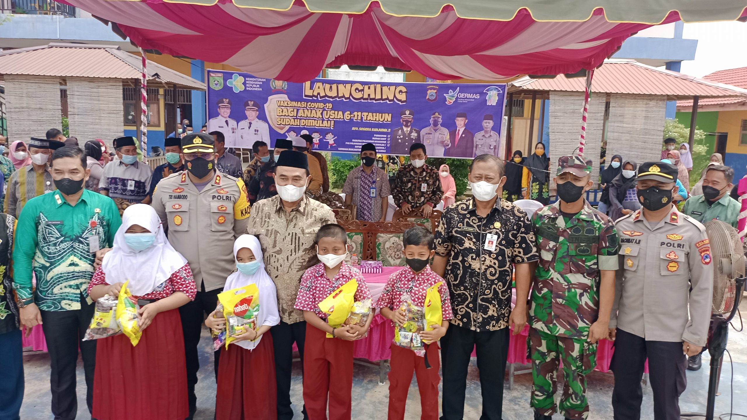 BATULICIN – Kabupaten Tanah Bumbu (Tanbu) melakukan launching vaksinasi anak-siswa usia 6 hingga 11 tahun, Kamis (6/1/2022).