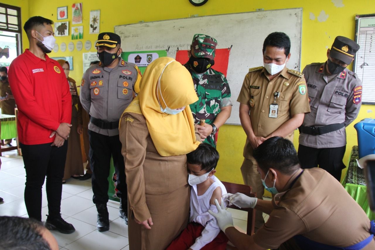 Launching vaksinasi anak dilaksanakan di SDN Paringin Selatan 1, yang dihadiri oleh jajaran unsur Forkopimda Balangan, Senin (10/1/2022).