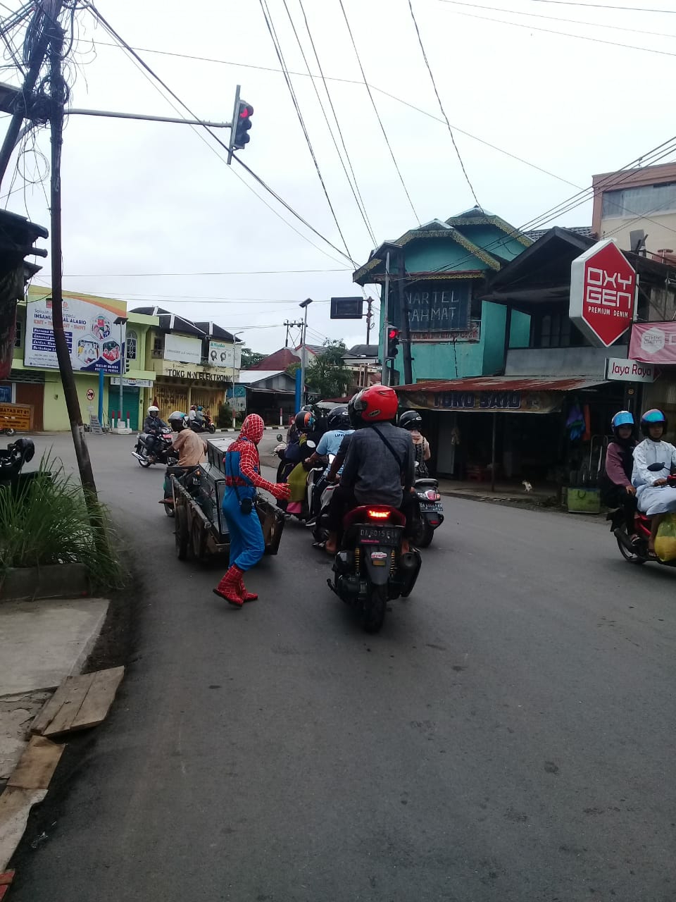 “Kehadiran Spiderman ini cukup membantu kelancaran lalulintas. Pengendara yang diarahkannya pun mematuhi,” kata seorang pengendara.
