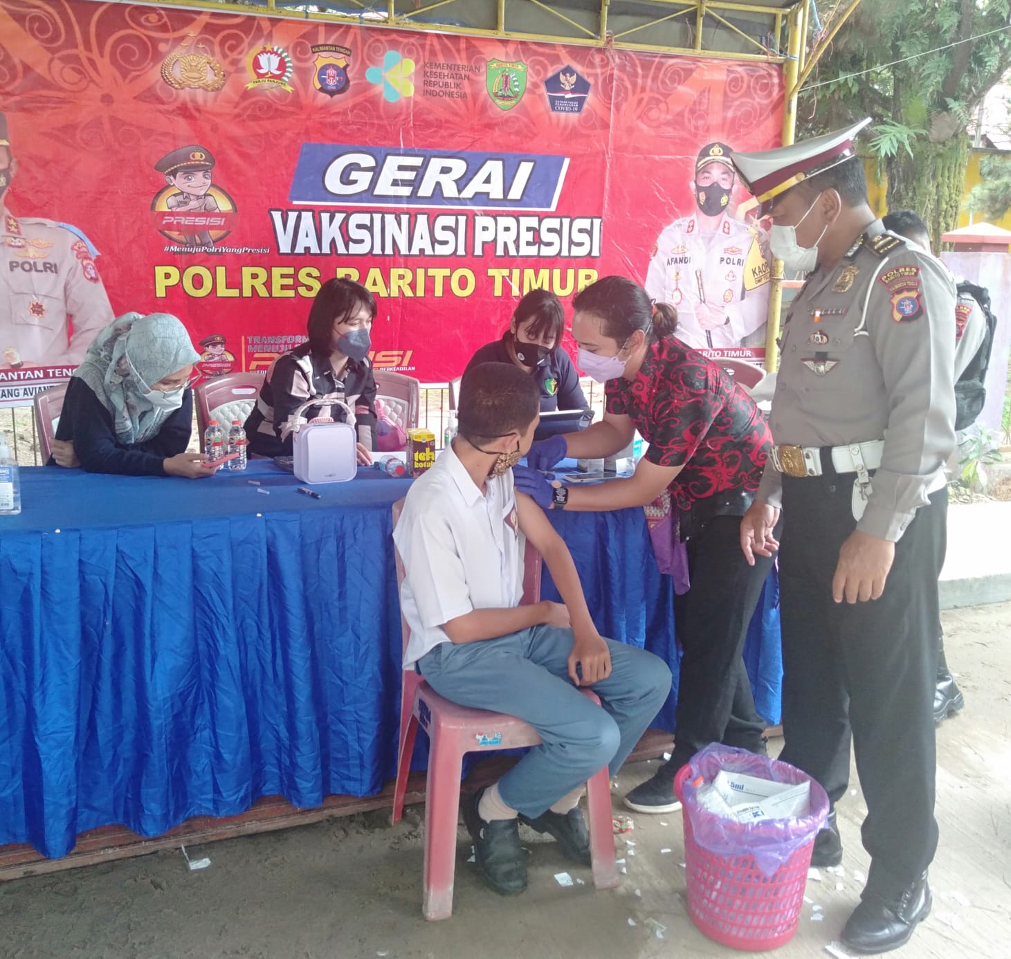 TAMIYANGLAYANG – Polres Barito Timur (Bartim), kembali melaksanakan gerai vaksinasi secara drive thru, dengan sasaran pengendara yang melintas di jalan raya depan SMAN 1 Tamiang Layang, Selasa (22/3/2022).
