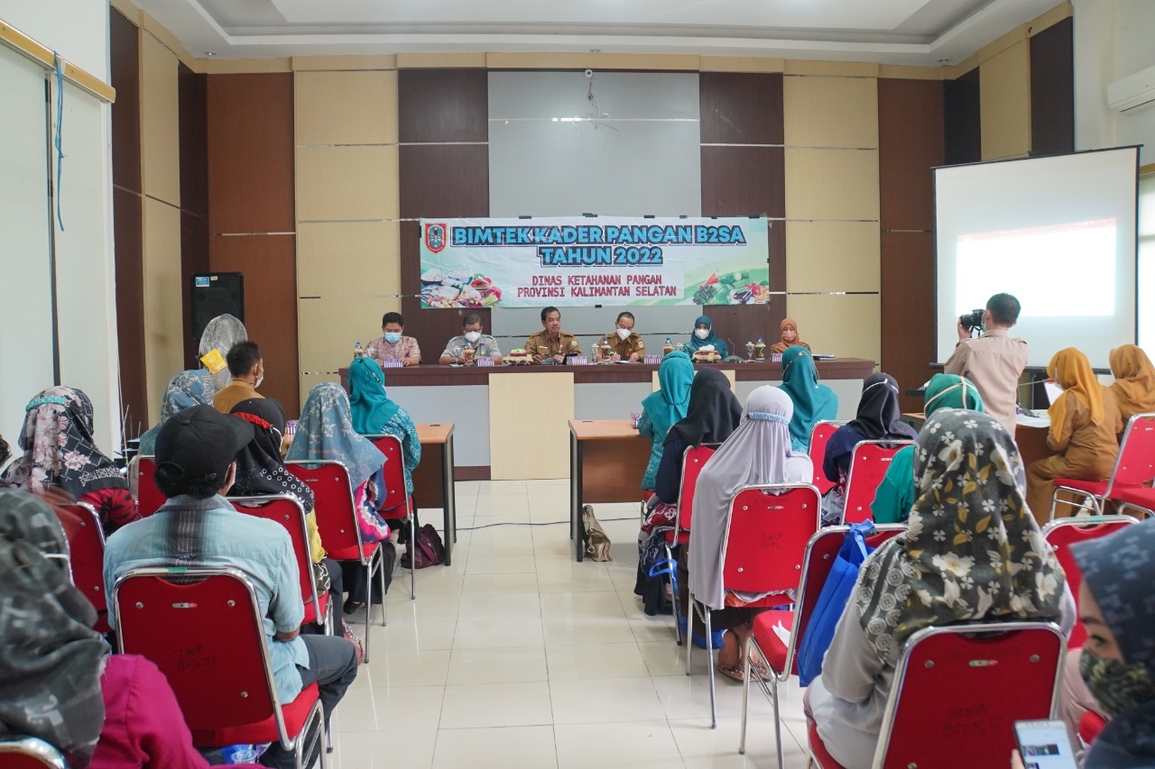 PARINGIN – Dinas Ketahanan Pangan Provinsi Kalimatan Selatan bekerja sama dengan Dinas Ketahanan Pangan, Pertanian dan Perikanan (DKP3) Kabupaten Balangan dan TP PKK Balangan, melaksanakan bimbingan teknis kader pangan Beragam, Bergizi, Seimbang, dan Aman (B2SA), di Aula DKP3, Senin (30/5/2022).