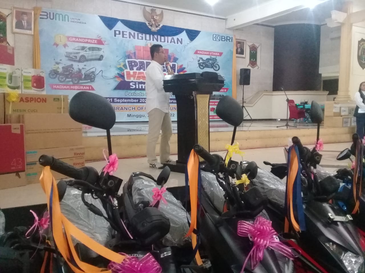 TAMIYANGLAYANG – Sebanyak 52 item hadiah dibagikan pihak Bank Rakyat Indonesia (BRI) Kanca Buntok dalam acara Panen Hadiah Simpedes Perioda II Tahun 2021 yang digelar Gedung Mantawara, Tamiyanglayang, Kabupaten Barito Timur (Bartim), Minggu (26/6/2022).