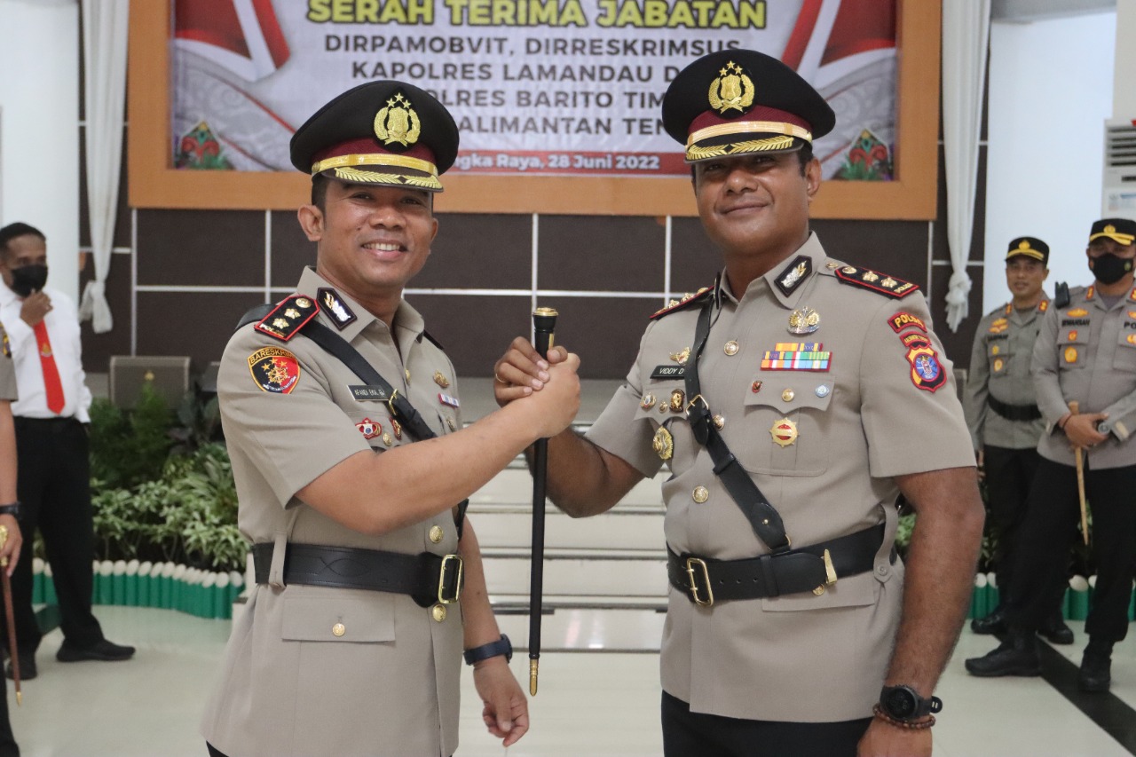 Acara serah terima jabatan Kapolres Bartim ini dipimpin langsung oleh Kapolda Kalteng Irjen Pol Drs Nanang Avianto MSi, di Aula Mapolda Kalteng, Selasa (28/6/2022) pagi.