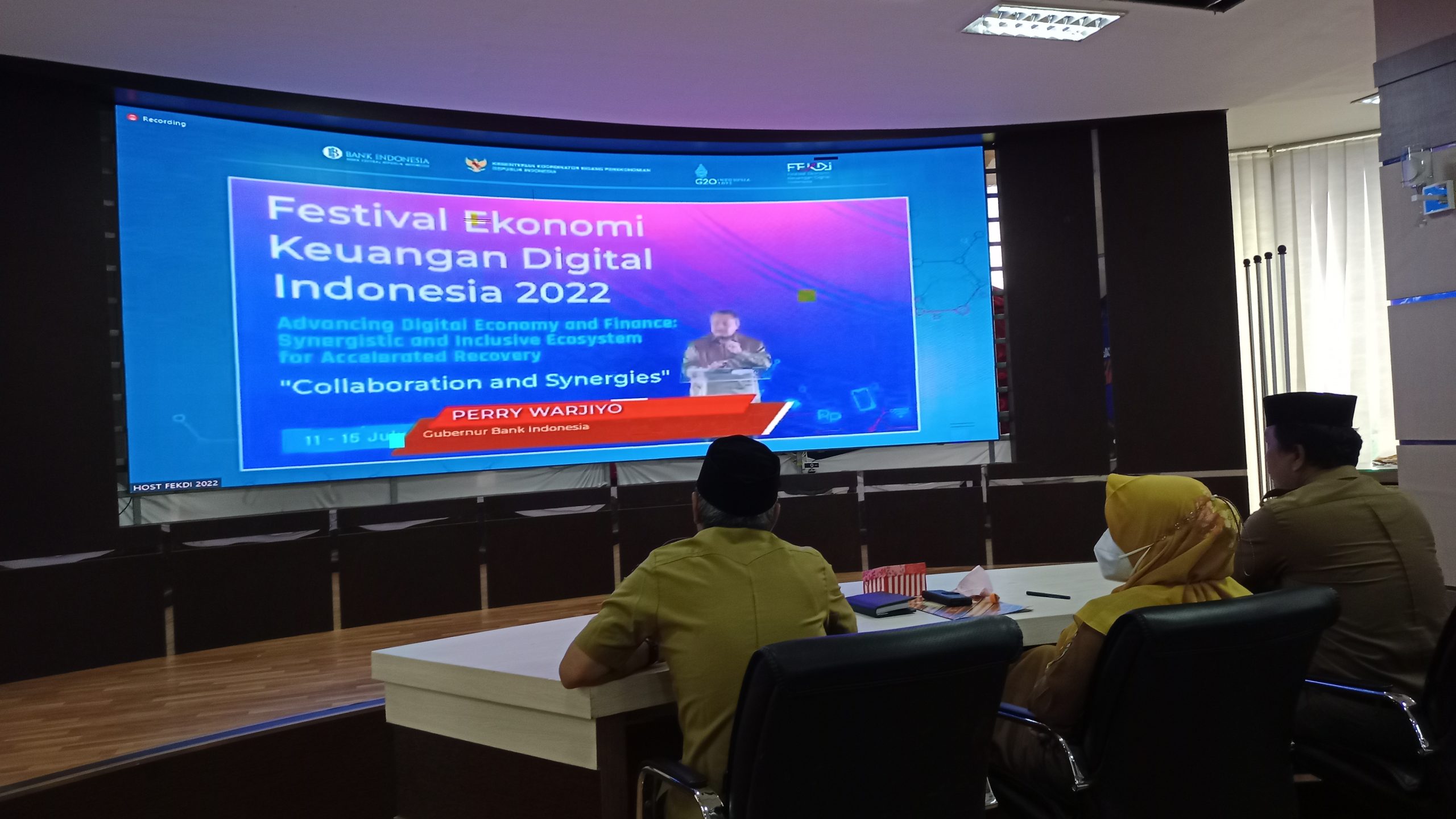 Kegiatan FEKD ini digelar di Denpasar Bali, dan terhubung ke DLR Kantor Bupati Tanah Bumbu (Tanbu) yang diikuti secara virtual oleh Asisten Bidang Pemerintahan dan Kesejahteraan Rakyat Ir Mariani, serta Asisten Ekonomi dan Pembangunan Ir H Rahmad Pradopo, Senin (11/07/2022).