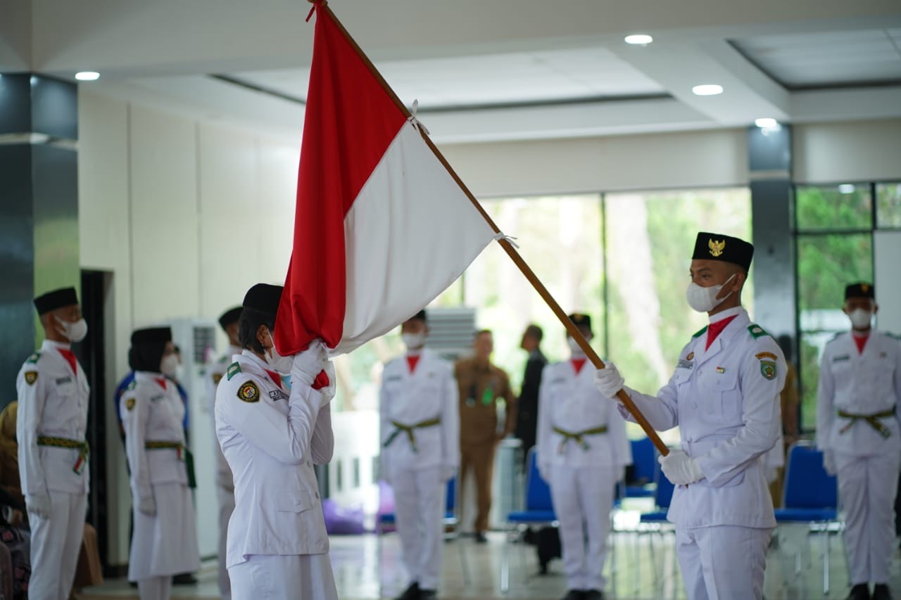 PARINGIN – Bupati Balangan Abdul Hadi resmi mengukuhkan 31 anggota Pasukan Pengibar Bendera Pusaka (Paskibraka) tahun 2022, di Mahligai Mayang Maurai, Selasa (16/8/2022).