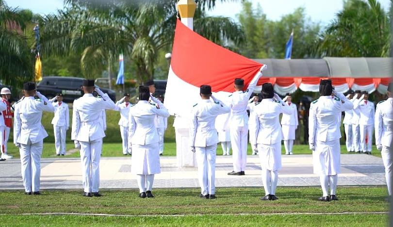 PARINGIN – Pelaksanaan upacara peringatan HUT ke-77 Kemerdekaan Republik Indonesia (RI) tahun 2022 di halaman Kantor Bupati Balangan, Rabu (17/8/2022) berlangsung khidmat.