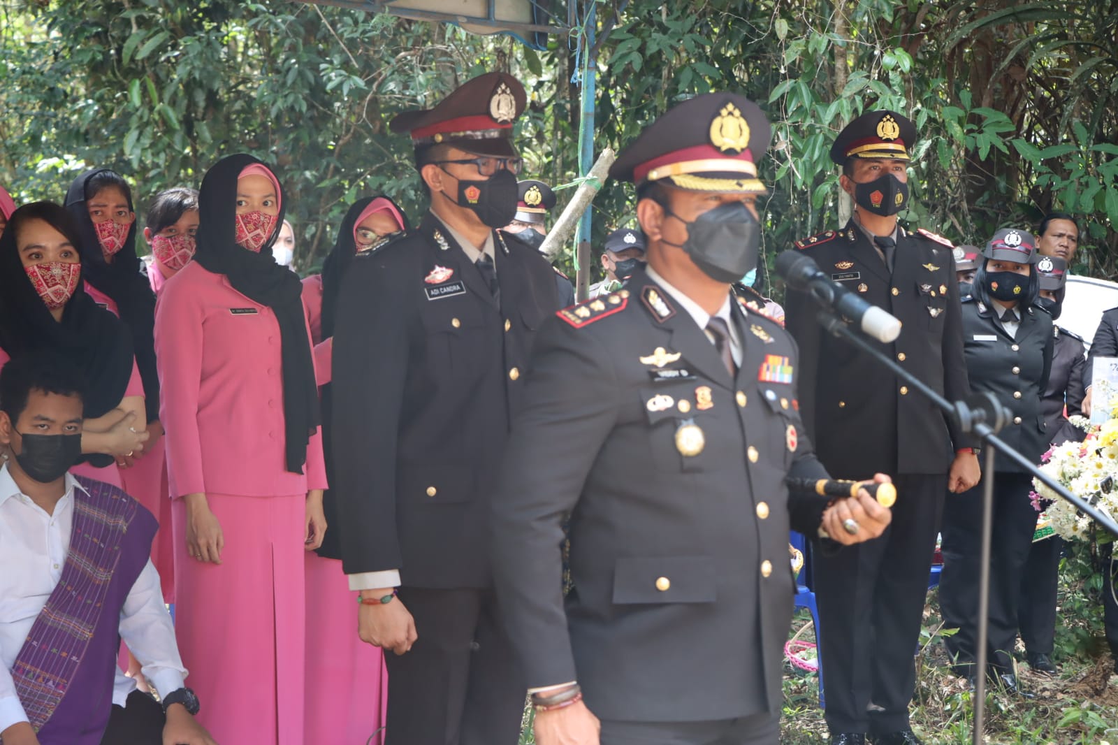 Jenazah almarhum Aipda Bonie Siahaan, sebelum dibawa ke lokasi pemakaman, terlebih dahulu diserahkan oleh pihak keluarga kepada Polres Bartim.