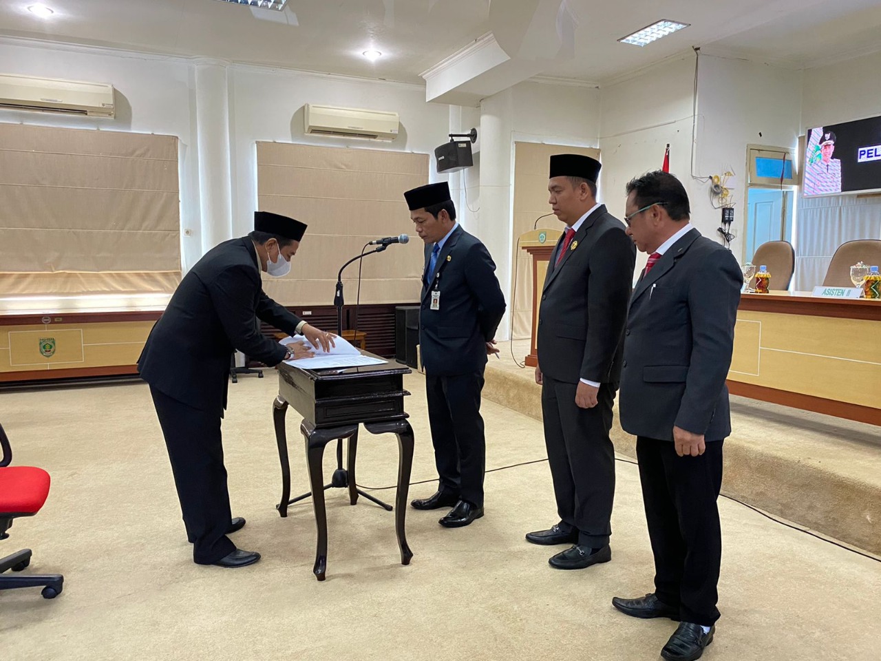 Pelantikan ini ditandai dengan penandatangan SK pengangkatan Direktur PDAM oleh Bupati Balangan, yang disaksikan langsung Ketua DPRD Balangan, Ahsani Fauzan dan Asisten II Bidang Perekonomian dan Pembangunan Setda Balangan, Rody Rahmady Noor.