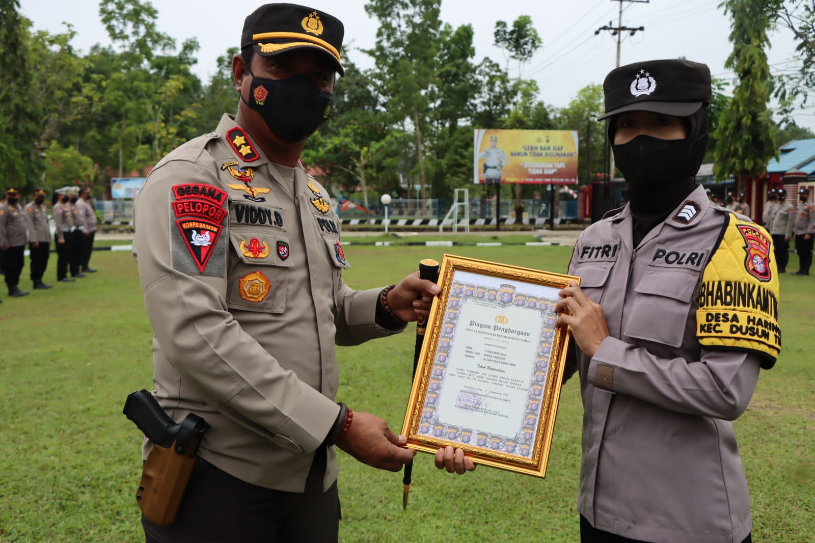 TAMIYANGLAYANG – Sebagai bentuk apresiasi terhadap personelnya yang berprestasi, Kapolres Barito Timur (Bartim), AKBP Viddy Dasmasela SH SIK, memberikan penghargaan kepada dua Polisi Wanita (Polwan) di Mapolres setempat, Selasa (13/9/2022) pagi.