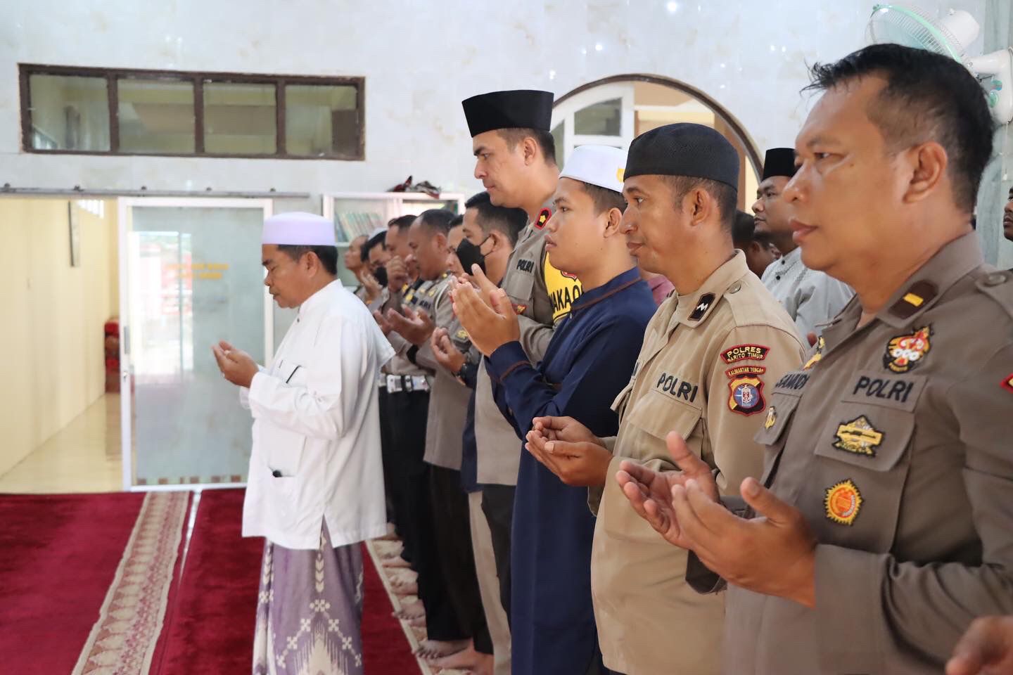 TAMIYANGLAYANG – Turut berduka, anggota Polres Barito Timur (Polres Bartim), Polda Kalimantan Tengah (Polda Kalteng), bertempat di Masjid Al Harist Polres Bartim, menggelar shalat ghaib dan do’a bersama bagi korban tragedi di Stadion Sepakbola Kanjuruhan, Kabupaten Malang, Provinsi Jawa Timur, Kamis (6/10/2022).