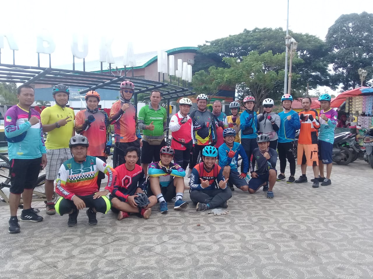 Usai gowes, Bupati Ampera AY Mebas dan rombongan beristirahat di kawasan Ruang Terbuka Hijau (RTH) Taman Nansarunai, Tamiyanglayang, sembari menyantap bubur ayam di kawasan tersebut.
