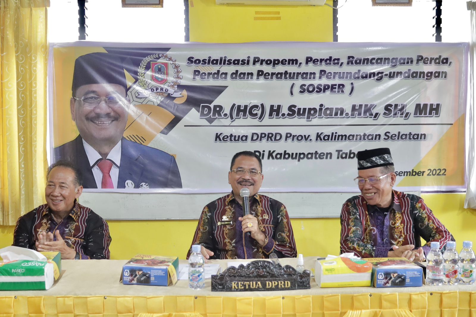 Dalam sosialisasi Perda tersebut, Supian HK didampingi Bupati Tabalong periode 1999-2004 Noor Aidi serta Wakil Ketua Bidang Organisasi Kaderisasi Keanggotaan Golkar Fitri Rifani sebagai narasumber.