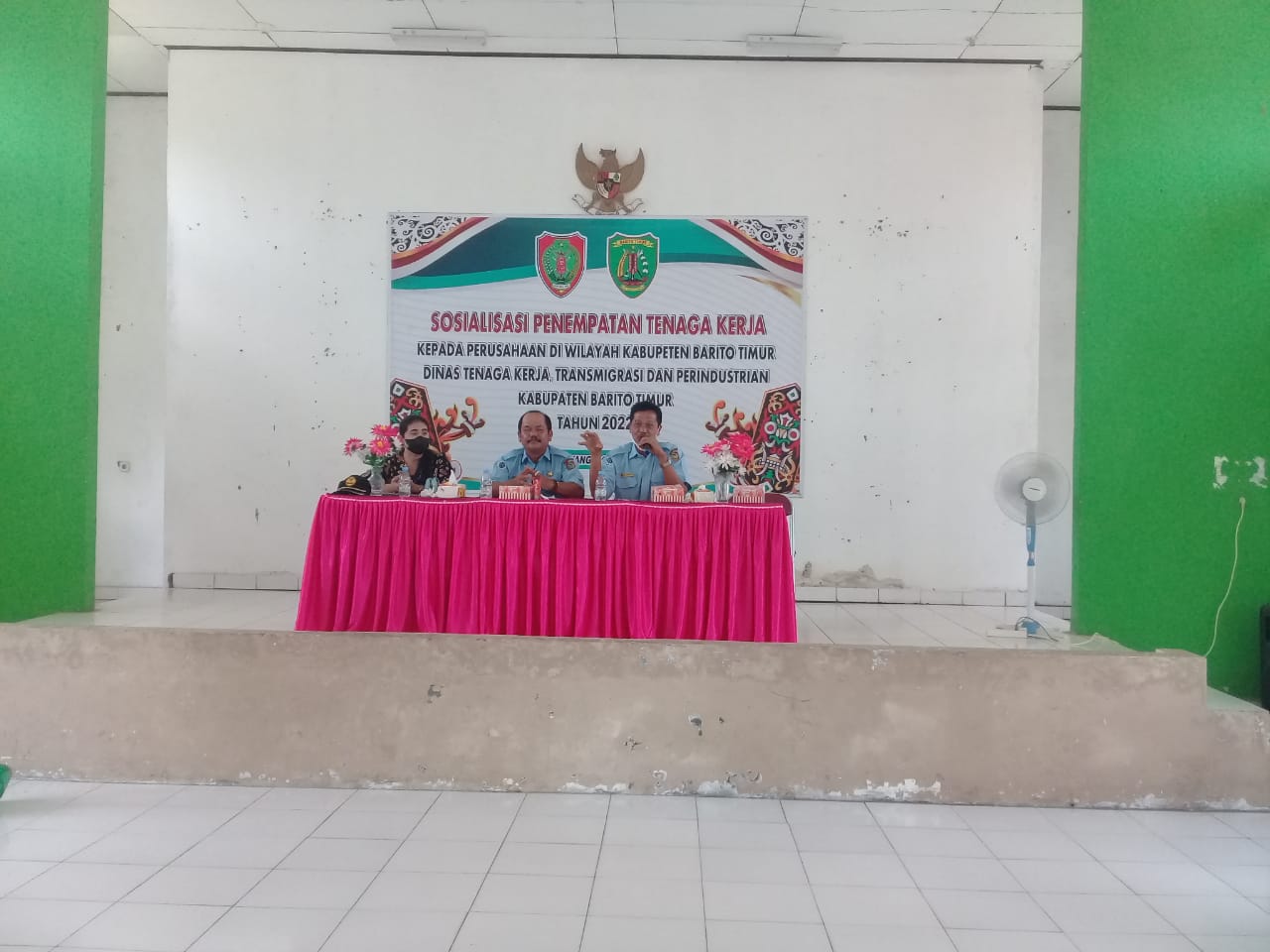 TAMIYANGLAYANG – Dinas Tenaga Kerja Transmigrasi dan Perindustrian Kabupaten Barito Timur (Bartim), bekerjasama dengan Dinas Tenaga Kerja dan Transmigrasi Provinsi Kalimantan Tengah (Kalteng), mensosialisasikan penempatan tenaga kerja kepada perusahaan di wilayah Bartim.