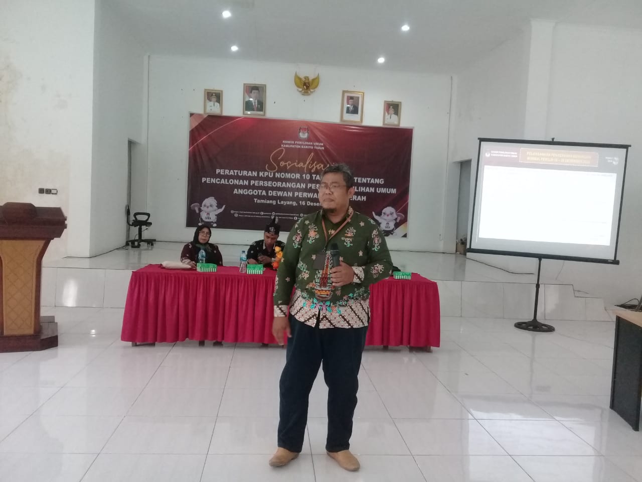 TAMIYANGLAYANG – Komisioner Komisi Pemilihan Umum ( KPU) Kabupaten Barito Timur (Bartim), menggelar sosialisasi Peraturan KPU Nomor 10 Tahun 2022 tentang Pencalonan Perseorangan peserta pemilihan umum anggota Dewan Perwakilan Daerah (DPD), di Aula BKPSDM Bartim, Jum’at (16/12/2022).