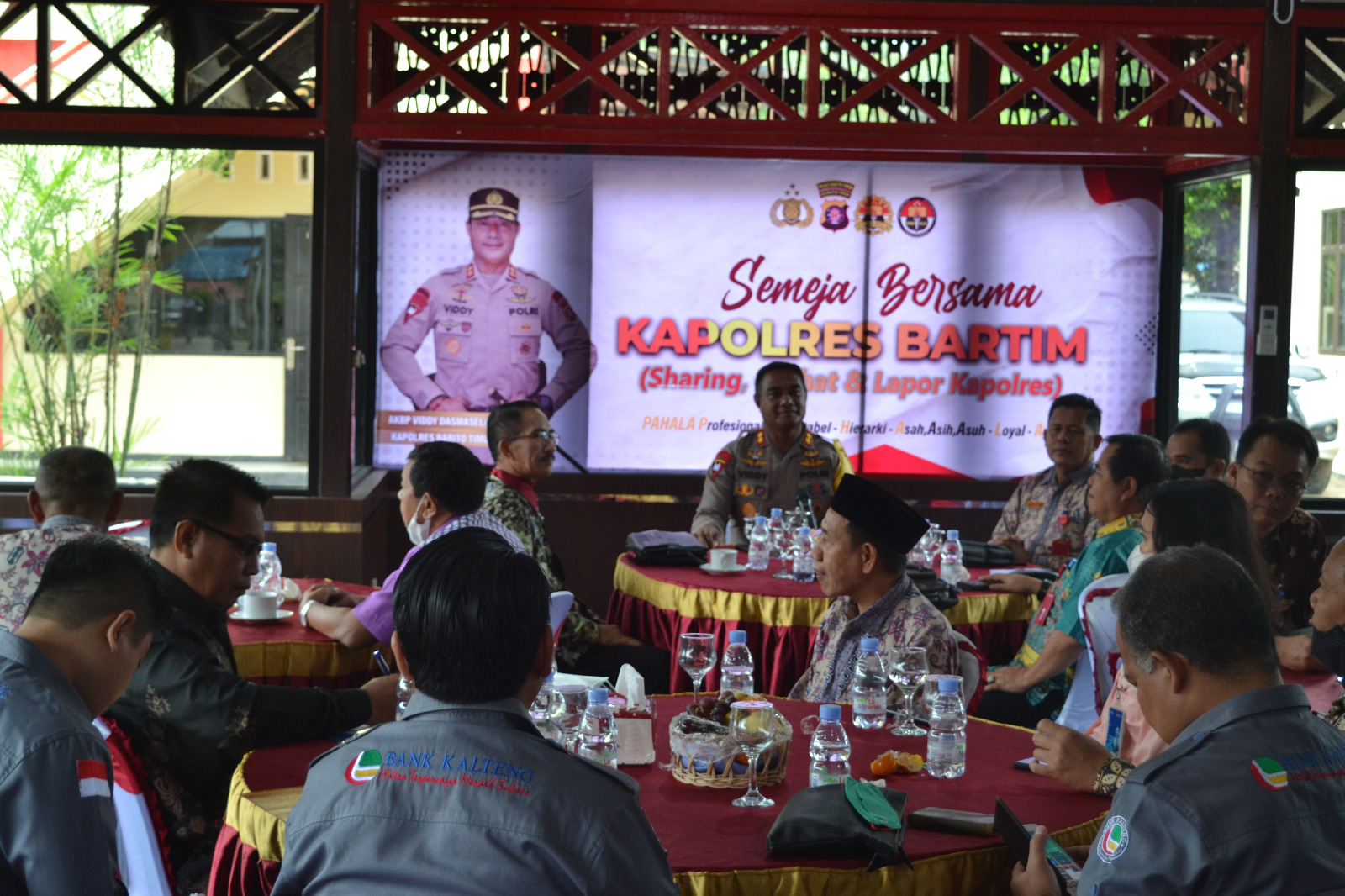 Dalam pertemuan di Ruang Terbuka Mapolres Bartim tersebut, Kapolres AKBP Viddy Dasmasela duduk semeja dengan Kepala Kantor Kemenag Bartim H Ahmadi SAg, Kepala DPMDSos Bartim Ir Bernusa MM, dan pimpinan beberapa perusahan.