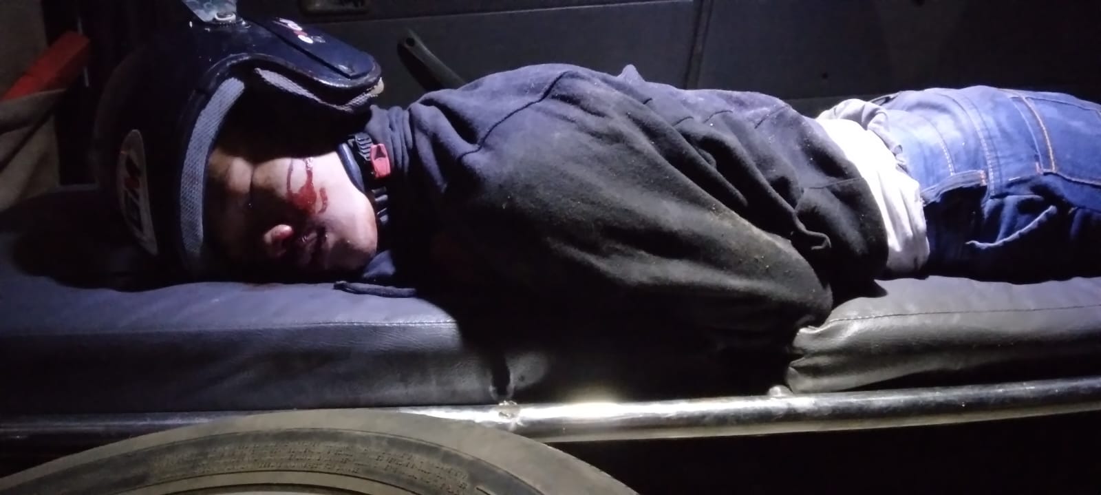 Pengendara sepeda motor yang ditabrak mengalami luka-luka lecet. Sedangkan kedua penabrak mengalami luka-luka pada bagian kening dan mulut. Pada saat kejadian lakalantas, cuaca gerimis.