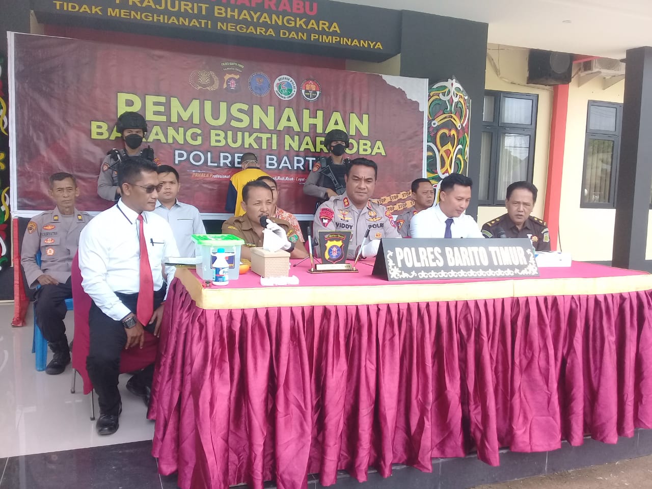 AKBP Viddy Dasmasela menuturkan, pemusnahan barbuk ini berdasarkan persetujuan Kejaksaan Negeri Kabupaten Bartim dan Pengadilan Negeri Tamianglayang.