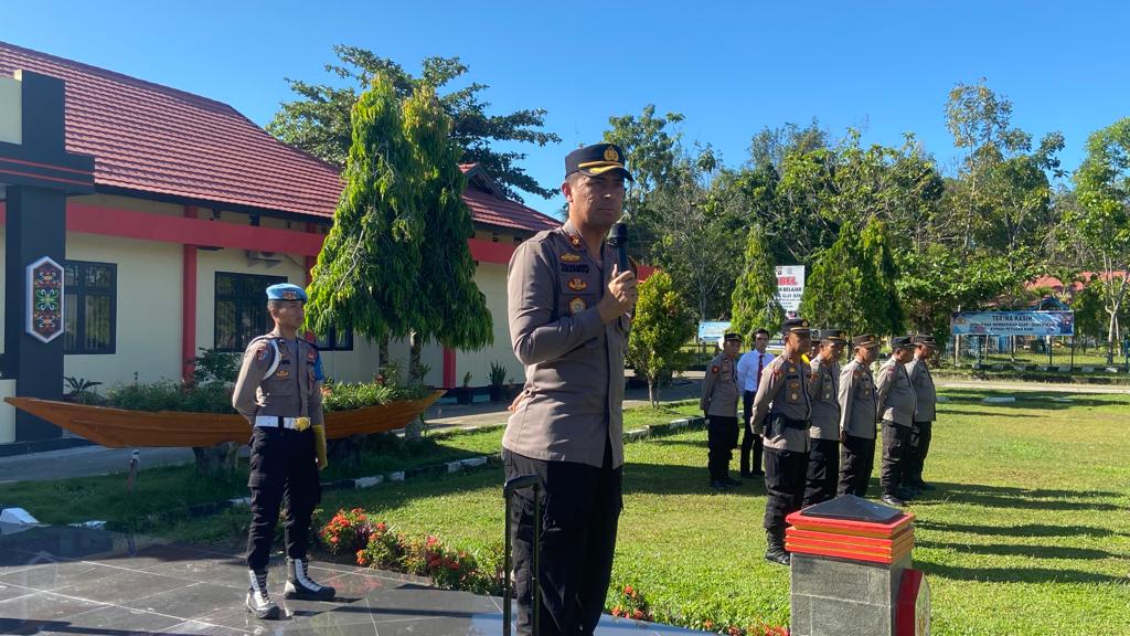 Dalam kegiatan tersebut, Wakapolres Kompol Zulyanto melakukan pengecekan kekuatan jumlah personel Polres Bartim.
