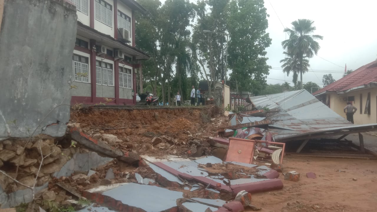 Diketahui tembok itu sudah cukup lama retak dan terlihat agak miring ke arah Mapolsek Dustim yang berada pada posisi lebih rendah dari areal bangunan Kantor Bupati Bartim.
