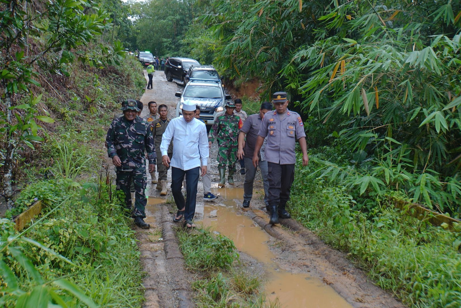 PARINGIN – Bupati Balangan Abdul Hadi melakukan pemantauan progres pembangunan akses jalan menuju wisata Air Terjun Batarius, yang terletak di Desa Mamigang, Kecamatan Halong, Jumat (2/6/2023).