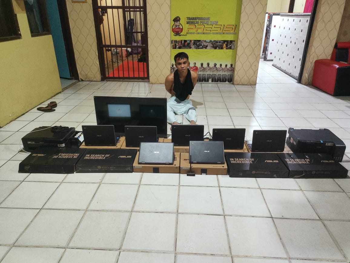 Terduga pelaku pencurian peralatan sekolah yang berhasil diamankan pihak Polsek Dustim adalah RS, seorang pria yang sering menawarkan laptop atau Chromebook merek Asus.