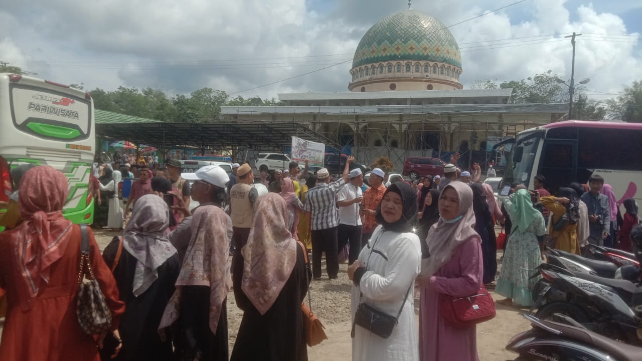 TAMIYANGLAYANG – Halaman Kantor Kementerian Agama (Kemenag) Kabupaten Barito Timur (Bartim), Kalimantan Tengah (Kalteng), sejak pagi Minggu (16/7/2023) ramai dipadati warga yang menyambut kedatangan kembali Jama’ah Haji Kabupaten Bartim dari Tanah Suci Makkah.