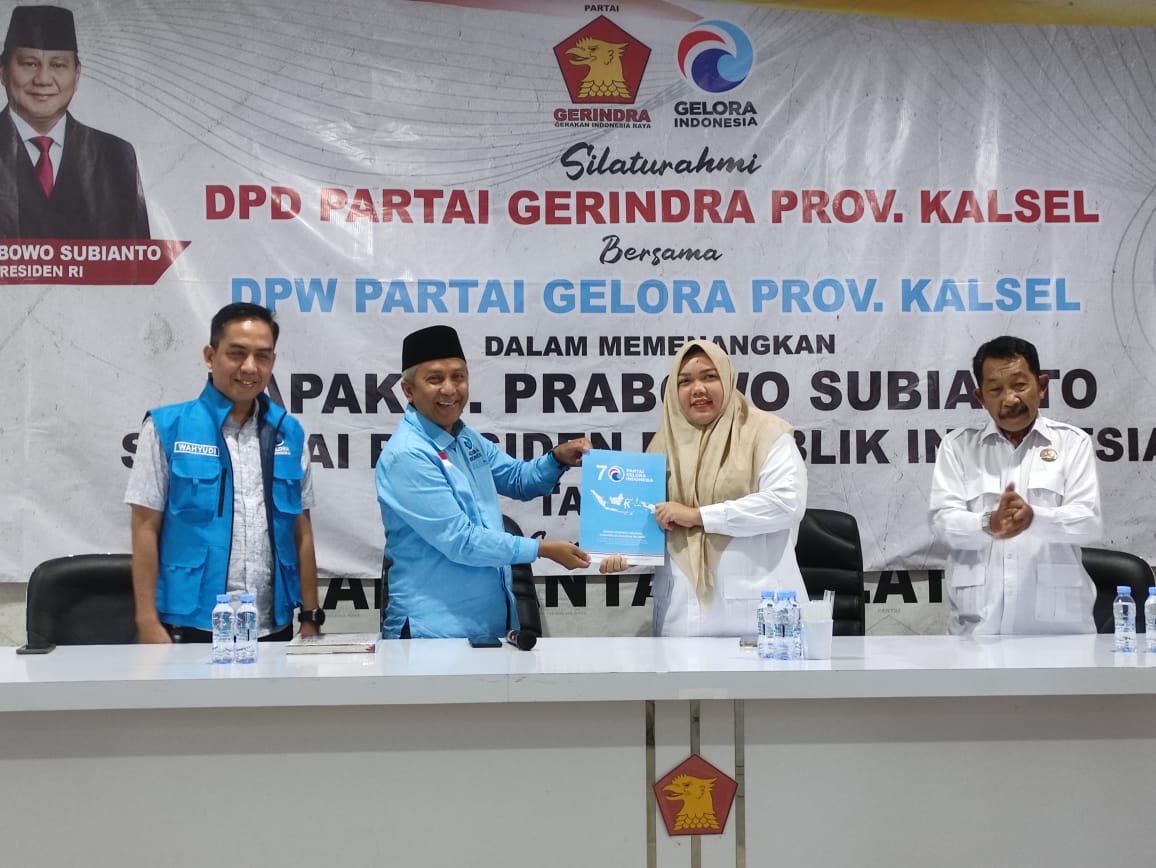 “Dukungan dari Gelora ini akan menambah kekuatan untuk memenangkan pak Prabowo di Kalimantan. Kami yakin bahwa di Kalimantan Selatan pak Prabowo akan menang lagi yang ke tiga kalinya,” tutup Wakil Ketua DPRD Kalsel ini.