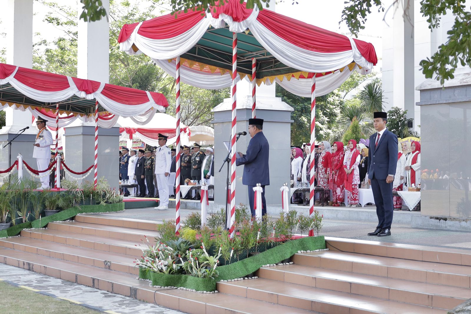 Upacara peringatan Kemerdekaan RI yang ke-78 dipimpin langsung Gubernur Kalsel Sahbirin Noor yang diikuti seluruh Forum Komunikasi Pimpinan Daerah (Forkopimda) Kalsel serta seluruh perwakilan SKPD lingkup pemerintah daerah Kalsel.