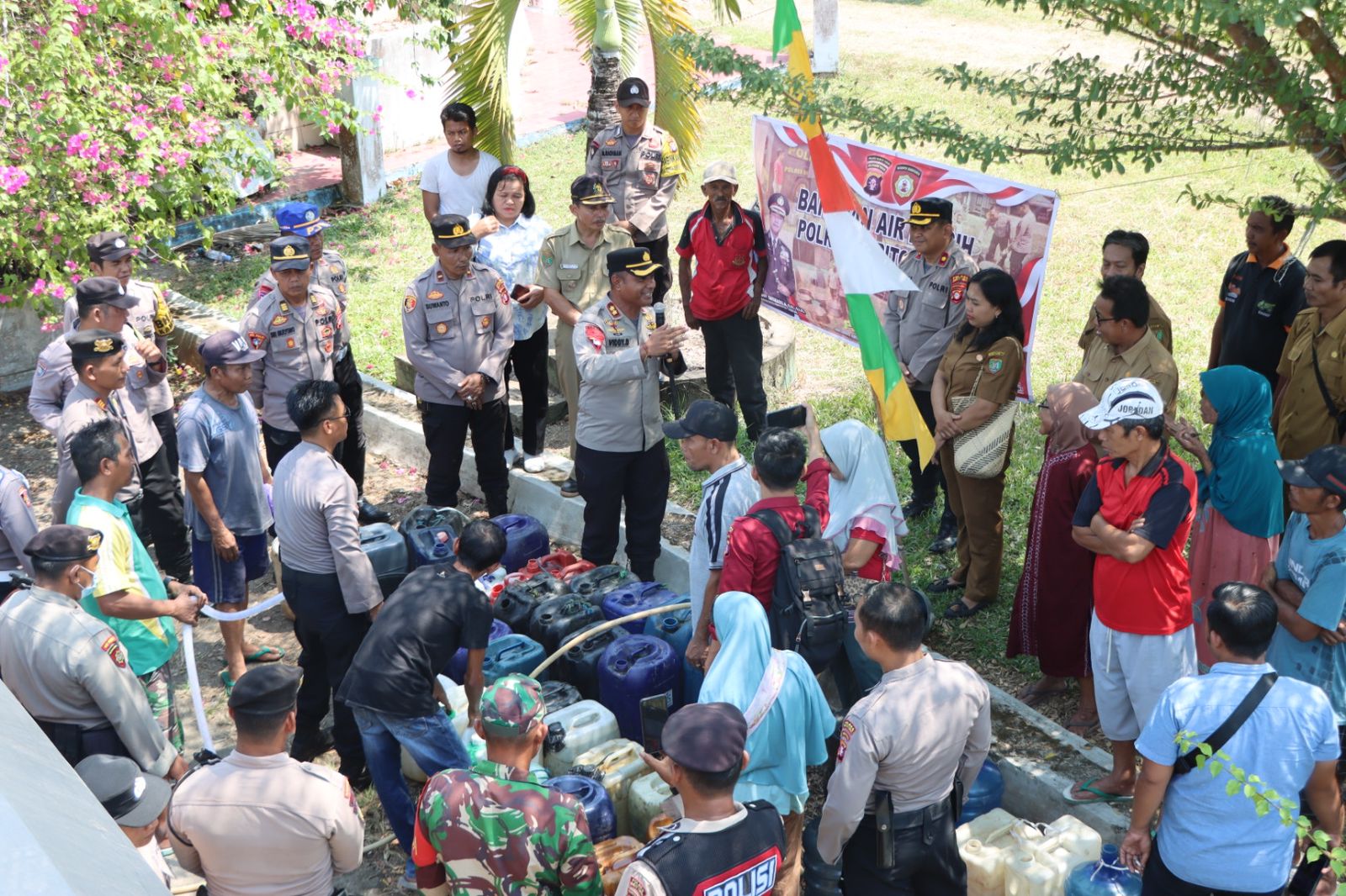 TAMIYANGLAYANG – Polres Barito Timur (Bartim) – Polda Kalteng, mendistribusikan bantuan air bersih kepada masyarakat di Kecamatan Benua Lima.