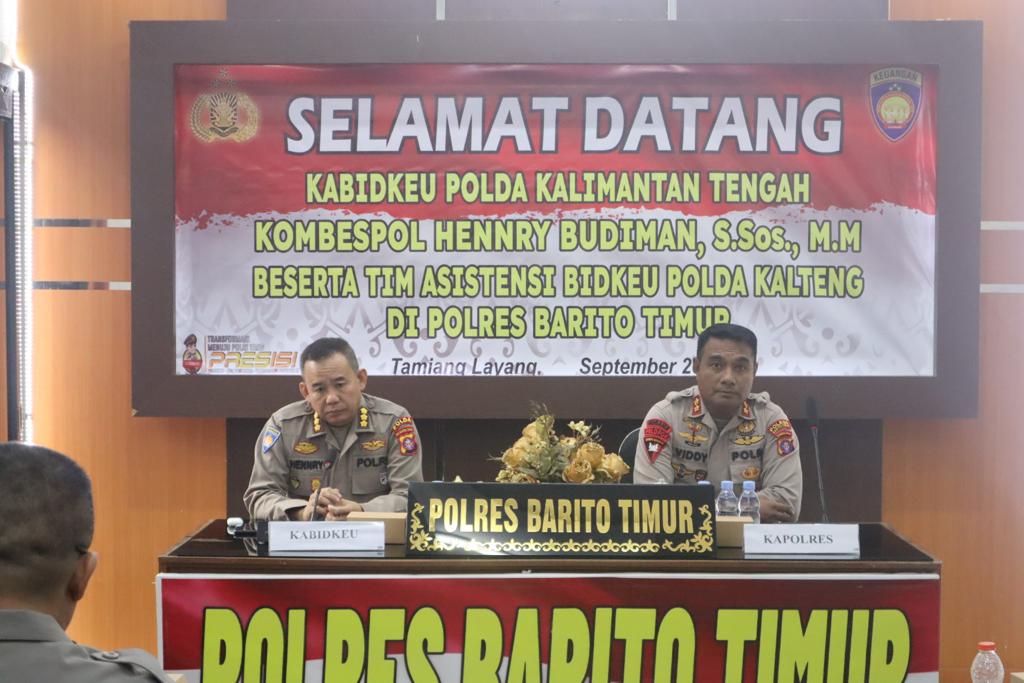 TAMIYANGLAYANG – Bidang Keuangan (Bidkeu) Polda Kalimantan Tengah (Kalteng), melaksanakan supervisi dan asistensi terkait pengelolaan anggaran di Polres Barito Timur (Bartim), Selasa (12/9/2023).