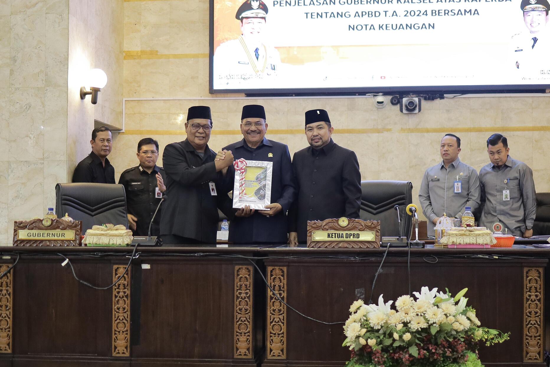 Pada kesempatan ini, Sahbirin juga menyampaikan penjelasan atas Raperda tentang APBD TA 2024 beserta nota keuangan. Dikatakannya, postur APBD yang tertuang dalam Rancangan APBD TA 2024 ini yakni pendapatan daerah diproyeksikan sebesar Rp10,048 trilyun, Belanja Daerah dianggarkan sebesar Rp10,3 triliyun, Penerimaan Pembiayaan yaitu pada jenis pembiayaan Sisa Lebih Perhitungan Anggaran (SILPA) tahun sebelumnya dianggarkan sebesar Rp108,7 milyar, dan pengeluaran pembiayaan dianggarkan sebesar Rp57,4 milyar.