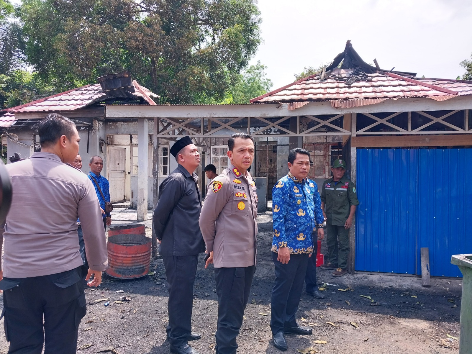 Dalam peninjauannya, Bupati Balangan Abdul Hadi bersama Ketua DPRD Balangan, Ahsani Fauzan didampingi Kapolres Balangan AKBP Riza Muttaqin melihat langsung kondisi dua unit rumah yang terbakar.