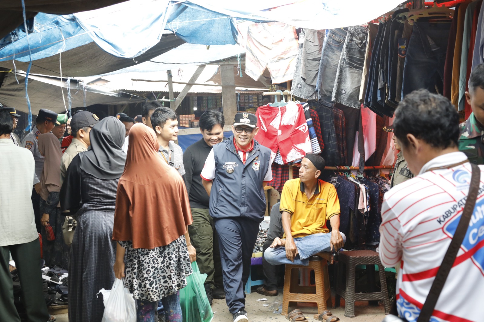 Indra Gunawan dan rombongan langsung menunju los pasar dan berkeliling pasar. Serta berdialog dengan warga dan pedagang, menanyakan harga Sembako seperti beras, bawang merah, bawang putih, ayam, cabai, dan lain-lain.