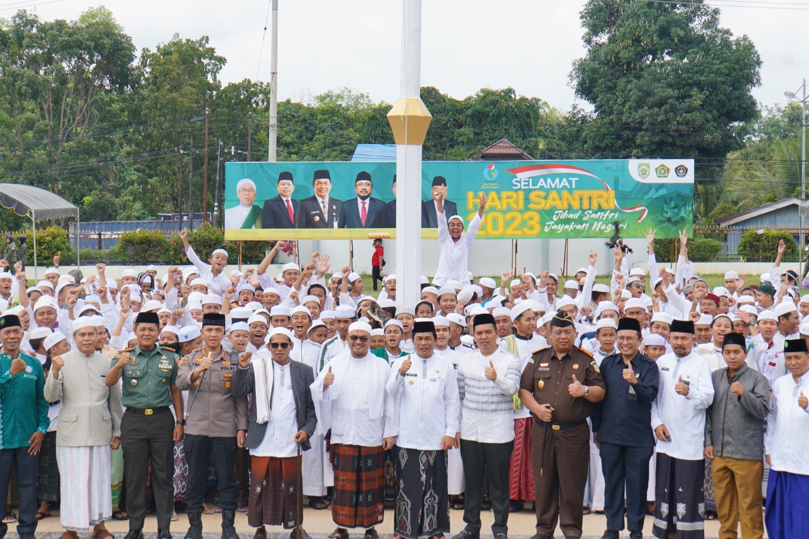 Upacara tersebut dipimpin langsung oleh Bupati Balangan, dihadiri Unsur Forkopimda, Kepala Kantor Kementerian Agama Kabupaten Balangan, kepala SKPD, Pimpinan Pondok Pesantren, para santri serta undangan lainnya.