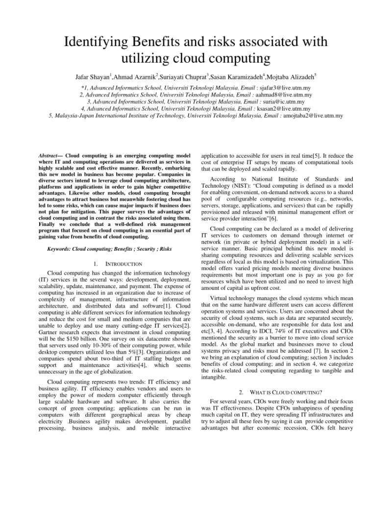 Pdf) Public Cloud Computing; Benefits And Risks To Users And Potential Users