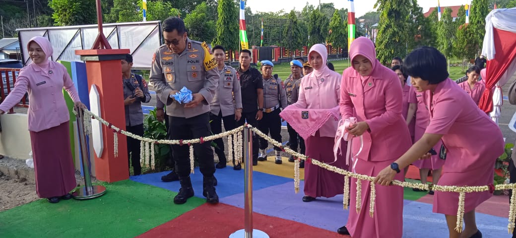 TAMIYANGLAYANG – Ketua Bhayangkari Polda Kalteng, Ny Irna Djoko Poerwanto, meresmikan rehab bangunan Taman Kanak-kanak (TK) Kemala Bhayangkari Polres Bartim, Selasa (16/1/2024).