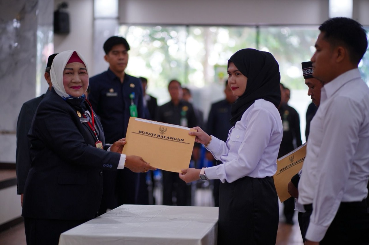 PARINGIN – Badan Kepegawaian dan Pengembangan Sumber Daya Manusia (BKPSDM) Kabupaten Balangan menggelar acara Penyerahan Surat Keputusan (SK) Pegawai Pemerintah dengan Perjanjian Kerja (PPPK) formasi tahun 2023, di Mahligai Mayang Maurai, Paringin, Jumat (1/3/2024).