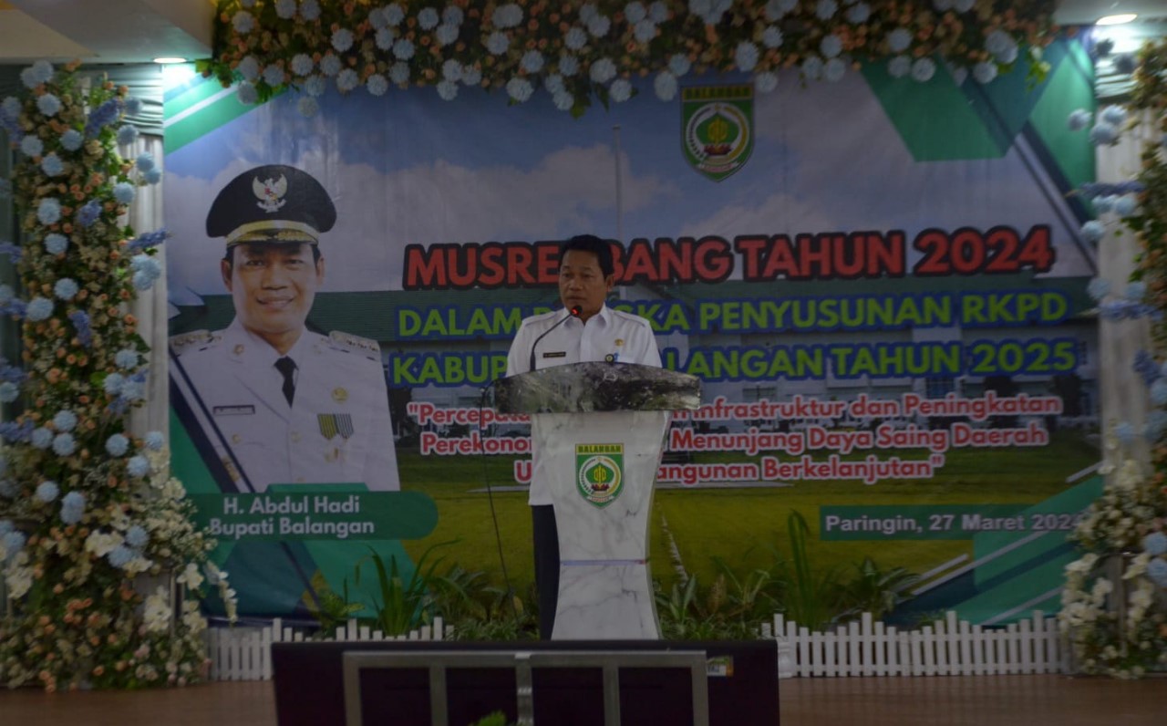 Hal tersebut disampaikan Kepala Badan Perencanaan Pembangunan, Riset dan Inovasi Daerah Kabupaten Balangan, Rakhmadi Yusni, saat melaksanakan Musyawarah Rencana Pembangunan (Musrenbang) 2024, di Mahligai Mayang Maurai, Kecamatan Paringin, Rabu (27/3/2024).
